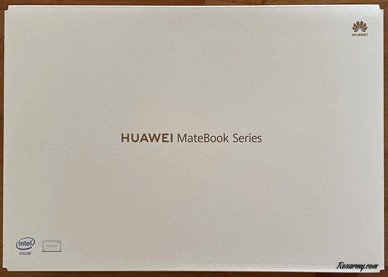 Dès le packaging on retrouve des codes inspirés par ceux de Cupertino. Sur fond blanc d’une boite en carton renforcé, centrée en lettres dorées trône la gamme à laquelle appartient l’ultraportable. Dans le coin supérieur droit s’affiche le logo Huawei et à l’opposé, celui d’Intel accompagné d’une indication de la taille de l’écran.