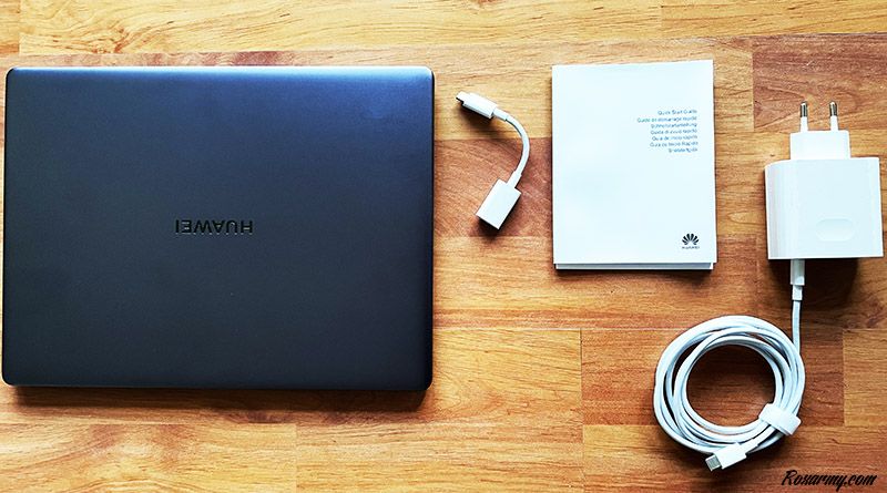 A l’intérieur figurent le Matebook 13, un adaptateur USB-C USB-A, un guide de démarrage rapide, la garantie constructeur, un bloc d’alimentation USB-C 65 W au câble USB-C mâle-mâle amovible. Le minimalisme est indéniablement de mise au niveau des accessoires de l’ultra portable alors que sa connectique en a bien besoin.