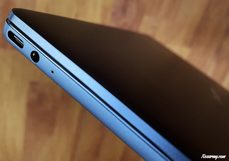 Outre le capteur d’empreintes situé sur le bouton de mise sous tension, la camera 720p placée dans le bord supérieur de l’écran est un petit plus appréciable par rapport au Matebook X pro. Pour une utilisation mixte, la batterie de 3615 mAh dispense une autonomie de 8h tandis qu’une recharge complète n’en requiert que 2.
