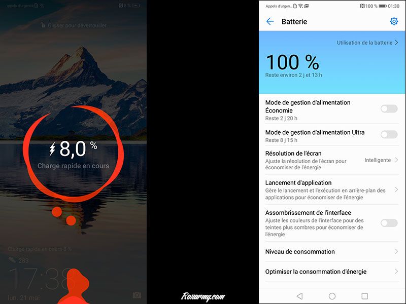 La batterie de 4000 mAh combinée à une gestion aboutie de la consommation confère au P20 Pro une autonomie de plus d’une journée et demi soit 38 heures environ pour un usage mêlant réseaux sociaux, appels téléphoniques, photos et jeux vidéo. De plus son système de recharge rapide Supercharge ne requiert que 30 minutes pour faire passer l’indicateur de 30 à 80%.
