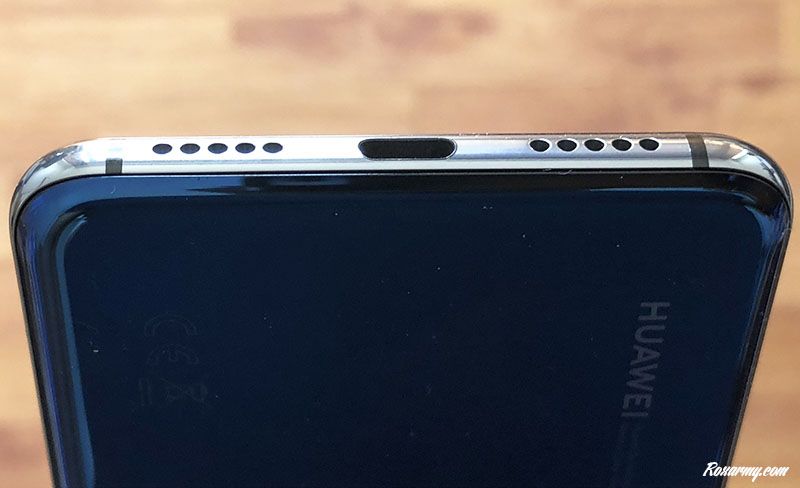 Avec au dos un revêtement en verre trempé à effet miroir, l’esthétique du P20 Pro est habilement préservée. Les logos de certifications aux normes européennes sont presque invisibles. Grâce à l’originalité de leur positionnement sur le coté à la verticale, le rappel des marques Huawei et Leica toute comme l’origine chinoise de la fabrication ne choquent pas.
