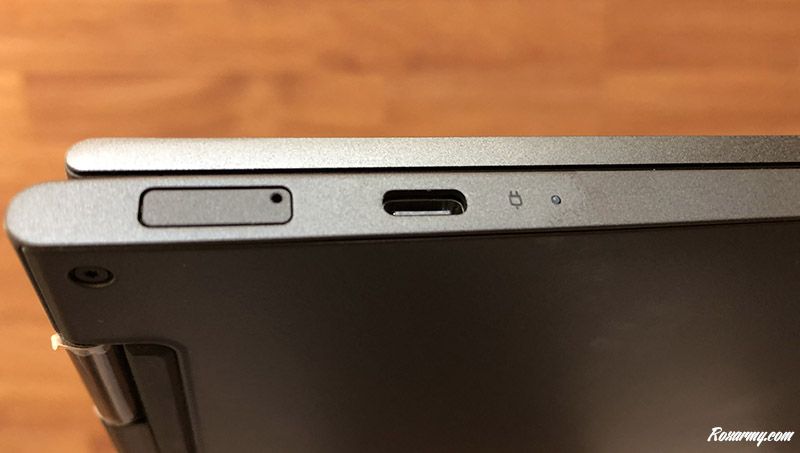 Avec 12,5 mm d’épaisseur, un poids d’1,2 kg et un format 13 pouces, le C630 est facile à transporter et rassure question robustesse. Sur la tranche droite figurent un emplacement pour carte SIM, un port USB-C et un témoin de charge. A gauche se logent le bouton d’alimentation, un connecteur audio mixte et un second port USB-C.