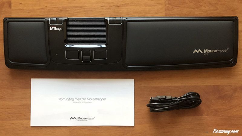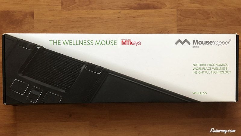 Fruit de la collaboration entre BakkerElkhuizen spécialiste néerlandais de l’ergonomie et MouseTrapper fabricant suédois de souris centrales, le MouseTrapper Prime est présenté dans un packaging tout en longueur. Outre l’intitulé du modèle, il est précisé que le dispositif est sans fil et piloté par le logiciel MTKeys.