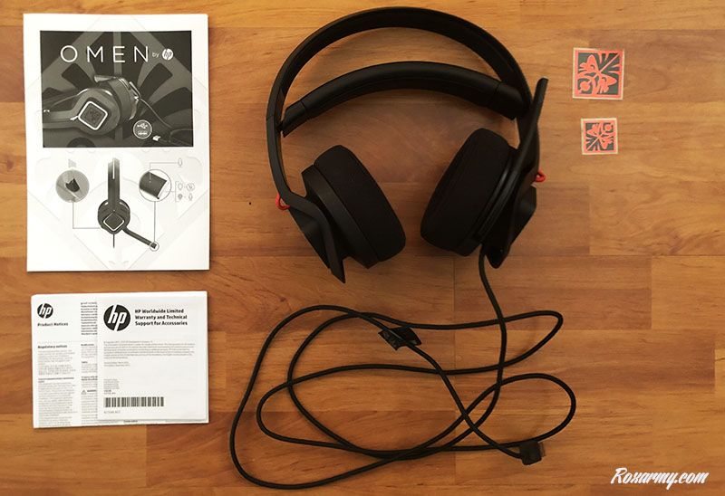 Aucun bouleversement non plus côté contenu puisqu’à l’intérieur se trouvent le casque filaire USB Mindframe Prime, 2 autocollants désormais collector du logo Omen période Voodoo, un guide rapide d’utilisation et un feuillet regroupant diverses informations légales dont la garantie.