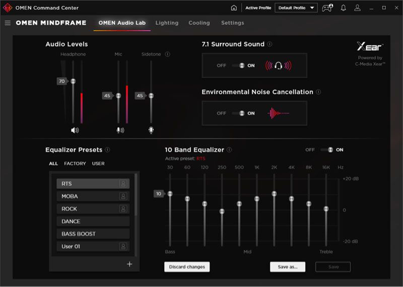 Comme prévu, le Centre de Commande a été révisé. Plus lisible, il possède dorénavant une section dédiée à l’audio. Outre la mise à disposition d’un équaliseur, de préréglages et d’enregistrement de profils, l’Audio Lab contrôle le son ambiant, la réduction de bruit, les volumes du sidetone, du micro et des écouteurs.