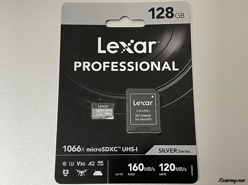 Le contenu est différent de celui la carte microSD Play destiné au gaming puisque la 1066x microSDXC UHS-1 Silver de 128 Gb est fournie avec un adaptateur SD pour microSD de classe C10 /UHS-1. Dans la continuité des codes du packaging, la carte microSD est noire et argent tandis que l’adaptateur est noir.