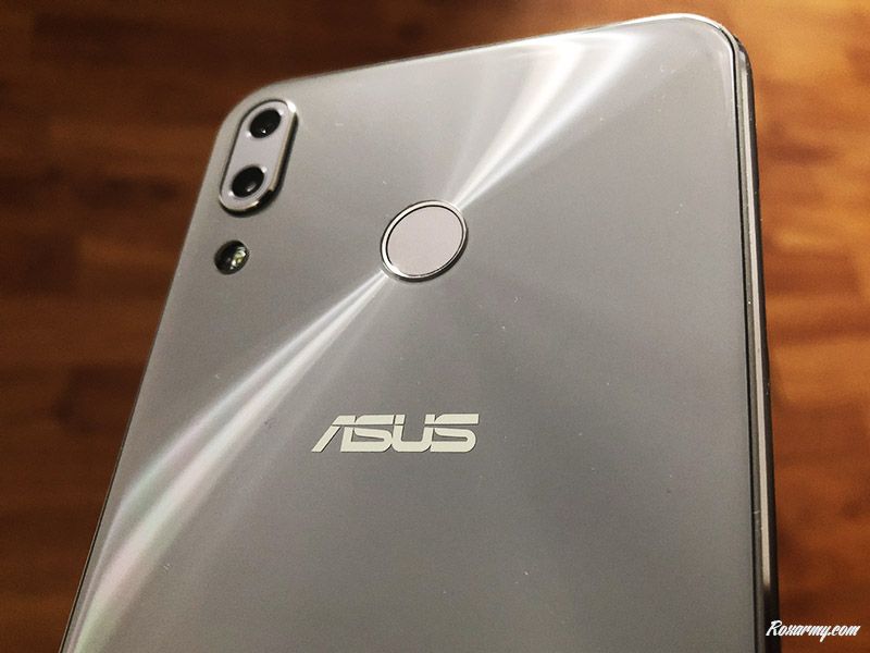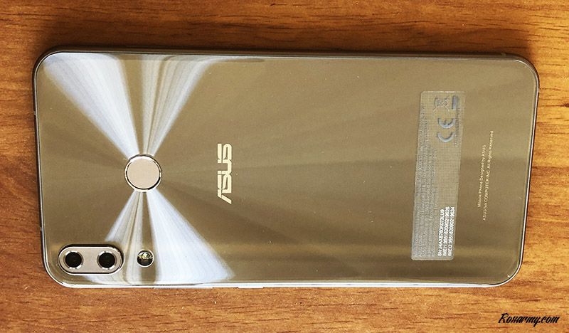 Toujours au dos, en plein centre, trône cette fois le logo Asus avec juste au dessus le lecteur d’empreintes digitales. A sa gauche figure le double capteur photo avec en premier un Dual Pixel Sony IMX363 de 12 MP et en second un grand angle de 120°. L’enregistrement vidéo s’effectue en 4 K UHD (3840×2160) à 30 fps. Il en va de même pour la caméra avant à 8 MP.
