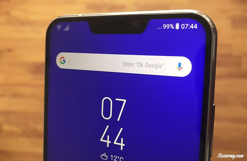 Autre emprunt à la firme de Cupertino, l’encoche de l’Iphone X se retrouve aussi sur le Zenfone 5. Ainsi les 6.2 pouces de son écran en verre Gorilla Glass 2,5D IPS+ Full HD+ (2246×1080) sont utilisés à 90%. La réduction d’espace au niveau des icones d’état est cependant prise en compte comme la possibilité de rendre l’écran homogène.
