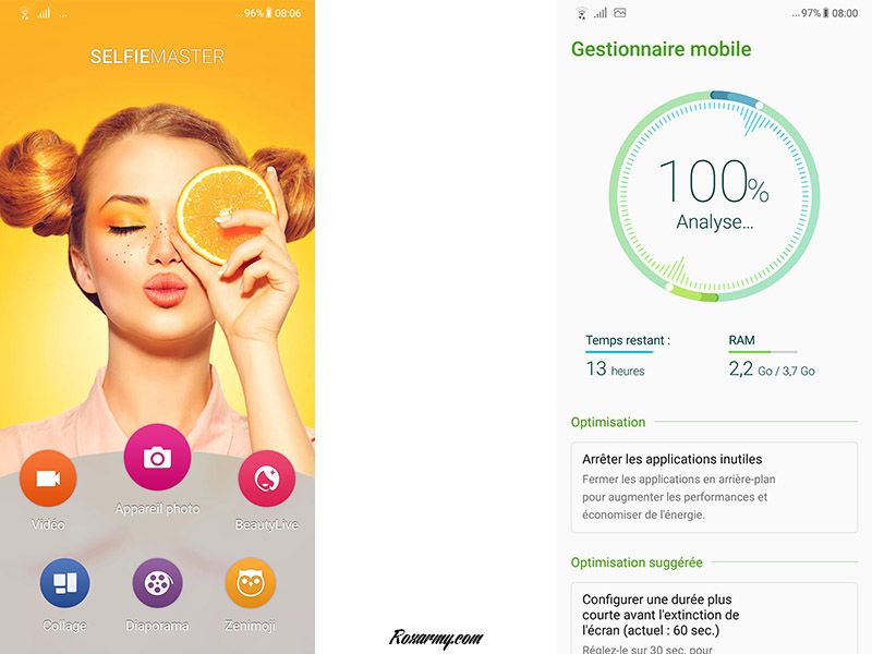 Celles d’Asus s’avèrent simple à utiliser à l’image de Gestionnaire Mobile pour optimiser le système, gérer la mémoire et économiser la batterie. De son côté Selfie Master propose toutes sortes de services comme Beautylive pour être encore plus glamour sur Instagram ou les Zenimoji les avatars 3D qui reprennent les expressions du visages façon Apple.