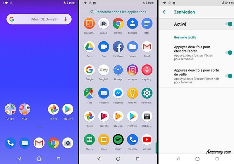 Un Snapdragon 660, un Adreno 512, 6 Go de Ram et 64 Go de stockage permettent au M2 de faire tourner sans ralentissements Oreo, de jouer à la plupart des jeux mobiles et de passer à Android Pie sans perte de performance. L’Ambient Display et le ZenMotion pour faciliter la consultation des notifications sont toujours présents.Si le M2 n’est pas 5G, Asus a bien anticipé la multiplication des usages NFC en le dotant d’une puce. En haut sur la tranche gauche, l’emplacement pour cartes SIM permet d’en loger 2 en plus d’étendre le stockage jusqu’à 2 To via micro SD. Animé par un ampli NXP 9874, le son délivré par le haut parleur est dans la norme.