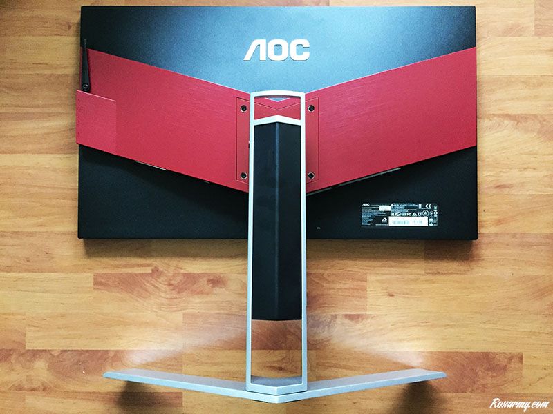 Pour se démarquer de ses concurrents, AOC appose sur le dos de ses moniteurs une reconnaissable plaque bordeaux apposée en forme V. Elle témoigne d’une  bonne connaissance de la culture e-sport où en compétition les écrans sont autant vus de dos que de face.