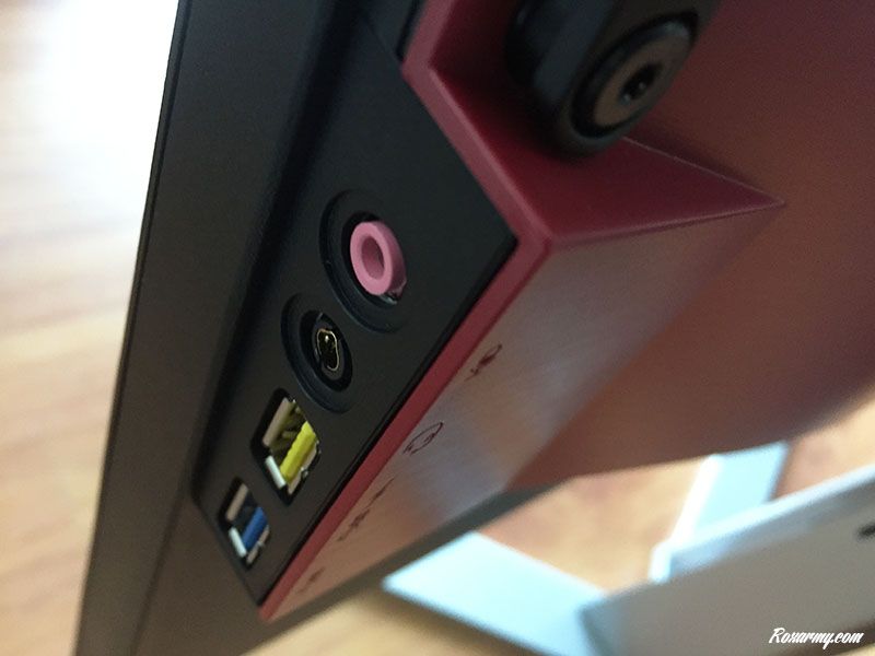 Avec une entrée HDMI, un DisplayPort 1.2, 2 entrées audio 3,5 mm, une sortie casque, 5 ports USB 3 dont un de type B pour le contrôle depuis un ordinateur et un autre pour la recharge rapide, la connectique de l’AG271UG est comparable à celle de l’ XG2703-GS de Viewsonic.