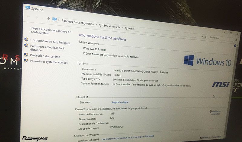 En prenant ses quartiers sur le GE62, Windows 10 Edition Familiale est tout à fait à son aise. Il accueillera sans coup férir les jeux PC les plus récents, Starcraft 2 Legacy of the Void, FallOut 4, Rise of the Tomb Raider.