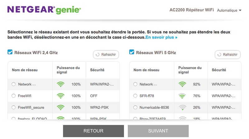 La détection du mode de fonctionnement du routeur et des réseaux sans fil existants s’effectue sans problème. Il suffit de sélectionner celui que l’on souhaite étendre et de saisir son mot de passe pour que le répéteur soit fonctionnel.