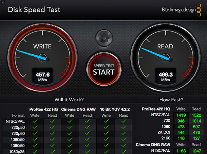 WD-Green-SSDMalheureusement il n’existe toujours pas à ce jour de version qui fonctionne sous OSX. Pour mesurer les vitesses de transfert en lecture et écriture sur Mac le logiciel Disk Speed Test de Black Magic constitue une alternative satisfaisante. Il affiche des valeurs proches surtout en lecture des 540 Mo/s annoncés.
