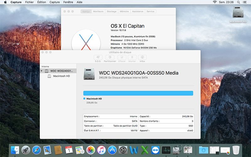wd green-2Le passage à Macos 10.11, version maximale imposée par Apple s’est effectué sans encombre. Le Macbook est bien plus réactif qu’avec son disque d’origine et l’utiliser est devenu de nouveau agréable. Itunes, Safari ou encore Mail ne rebondissent qu’une seul fois avant de se lancer contre cinq ou six auparavant.