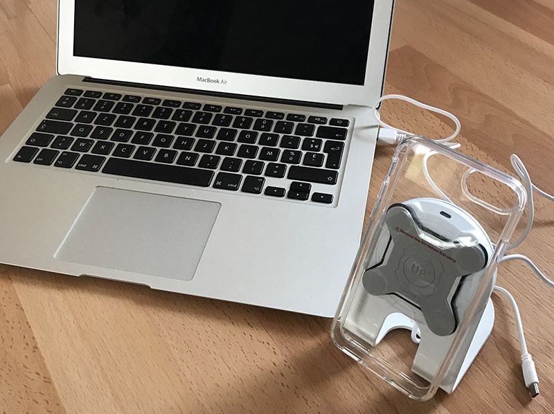 Up Mobile est une solution de charge sans-fil. Elle comprend de 3 éléments : un chargeur sans-fil, un adapteur magnétique (coque de protection) et d’un câble USB. La société française Exelium qui l’a mise au point (cocorico !) est située géographiquement à Metz. Elle doit son existence à son fondateur Henri Fourquet qui l’a créé en 2006. Les produits de cette société ont pour objectif de faciliter la vie de ses utilisateurs. Il en est ainsi du support mural SLIDE qui permet d’orienter et/ou d’incliner un écran plat grâce à son bras mobile. Fort du succès de ses produits, Exelium se lance alors tel un cheval de Troie à l’assaut du marché de la charge sans-fil. Bon, quand ils disent sans fil, c’est une façon de parler (vive le marketing !) car il y a quand même un fil et celui-ci n’est pas le fil d’Ariane. Elle est drôle mon allusion à la mythologie grecque. En effet, la station de rechargement doit être reliée à une source d’alimentation par un câble USB (fourni dans la boîte) afin de pouvoir recharger votre portable. Quand j’ai découvert le chargeur sans-fil pour bureau, je me suis entendue murmurer « Mais quel peut bien être l’intérêt de ce produit ? » Mais dans quelle société de gadgets vivons-nous ? La station de rechargement Exelium propose un principe simple : celui de recharger votre portable en un seul geste !