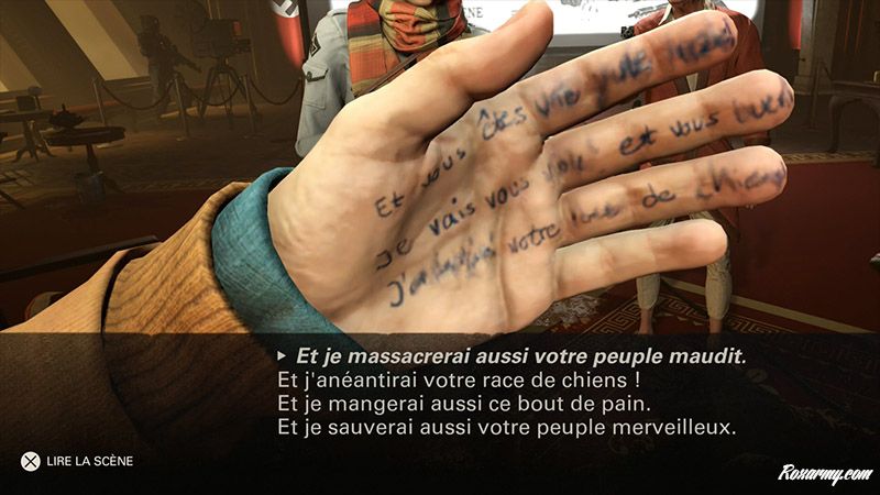 Frau Engel reste toujours monstrueusement sadique mais Wolfenstein 2 ne contient quasiment aucun autre méchant charismatique pour densifier l’histoire. L’enfance difficile de B.J » Blazkowicz et le passif des résistants qui le rejoignent émeuvent peu. De plus tourner en ridule « Le Barjo » désacralise quelque peu le mythe sans pour autant le rendre plus humain.