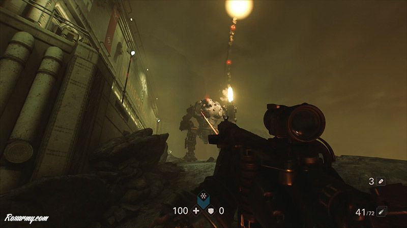 Après un Wolfenstein The New Order et une préquelle réussis, le studio suédois MachineGames signe avec Wolfenstein II : The New Colossus la suite des aventures de William « B.J » Blazkowicz. Les Nazis tentent de récupérer Le Marteau d’Eva ce sous-marin nucléaire que leur ont dérobé la resistance.A peine remis de ses blessures et totalement brisé, Blazko le Barjo va devoir lutter en chaise roulante pour éviter d’être recapturé. Montée en grade, l’effroyable Irene Engel en fait désormais une histoire personnelle. Pour la contrer et déclencher une révolution, les membres du cercle Kreisau doivent se trouver de nouveaux alliés. Du Nouveau Mexique à Manhattan en passant par Washington et la Nouvelle Orléans l’Amérique faisant partie du 3eme Reich, est dorénavant le nouveau théâtre des opérations de cet opus. Il en résulte un redesign de l’environnement avec une esthétique nazie visuellement percutante. Ayant déjà fait ses preuves avec Doom, il reste encore à id Tech 6 le moteur graphique d’Id Software de perfectionner le rendu des personnages. La mécanique de jeu mise en place précédemment est conservée. La vie revient jusqu’à un certain seuil en se reposant, elle se récupère en collectant de la nourriture et on la préserve via une armure absorbant les coups. Il est possible d’adopter un style agressif en fonçant dans le tas mais aussi d’opter pour une technique plus subtile en mode infiltration. Dans un cas comme dans l’autre l’élimination des officiers nazis est une priorité à la fois pour s’orienter en plus de la carte mais également pour éviter que ces derniers appellent des renforts.En plus d’être conséquent, l’arsenal à disposition est réellement jubilatoire. L’emploi du canon laser, de la mitrailleuse lourde ou du lance-flammes comme d’autres armes redoutable s’avère terriblement efficace au regard des dégâts infligés. Comme il incombe à l’idéologie nazie d’unifier ses rangs, le bestiaire n’est pas un modèle de diversité. En comparaison avec The New Order, Ther New Colossus manque de Boss de fin. Mise à part un rodéo particulièrement chaud et une audition à choix multiples pour laquelle il conviendra de connaitre son texte, la jouabilité varie peu. Incarner temporairement un personnage avec d’autres caractéristiques comme Anya par exemple aurait permis de rompre avec la routine mais ce ne sera possible que sous la forme de DLC. Enfin la narration et la mise en scène principaux pointx fortx du premier opus perdent en intensité dramatique. Frau Engel reste toujours monstrueusement sadique mais Wolfenstein 2 ne contient quasiment aucun autre méchant charismatique pour densifier l’histoire. L’enfance difficile de B.J » Blazkowicz et le passif des résistants qui le rejoignent émeuvent peu. De plus tourner en ridule « Le Barjo » désacralise quelque peu le mythe sans pour autant le rendre plus humain. Que ce soit le très rock générique de fin, les bruitages ou encore les morceaux du jukebox l’ambiance sonore est grandement réussie. Les temps de chargement s’intègrent de manière assez discrète en cours de jeu. Enfin le passage rendant hommage à Brazil de Terry Gilliam ou le découpage à la Brian de Palma ne manqueront pas de plaire aux amateurs de cinéma. Avec une douzaine d’heures pour terminer le mode histoire, 8 pour en finir avec les Ubercommander et les missions secondaires, le dernier Wolfenstein nécessite une vingtaine d’heures pour faire le tour du propriétaire sans compter le temps passé au stand de tir, à faire les exercices de simulation ou se divertir en mode rétro sur Wolfstone 3D. Techniquement proche de Doom, toujours édité par Bethesda, Wolfenstein 2 : The New Colossus reprend certains points positifs de son prédécesseur mais pèche par une scénarisation moins poignante et un manque de méchants intermédiaires. Plébiscité au Game Critic Awards de l’E3 2017 dans la catégorie jeu d’action, il reste toutefois un bon FPS.