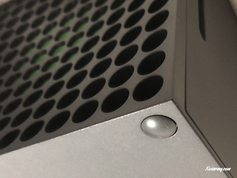 En optant pour un design monolithique comme dans 2001, Microsoft rompt avec le format de ses précédentes boxes. Si la position horizontale est possible comme en témoignent les 4 patins placés sur le côté droit, le mode mini tour PC est d’autant plus esthétique qu’il invite à diverses personnalisations.